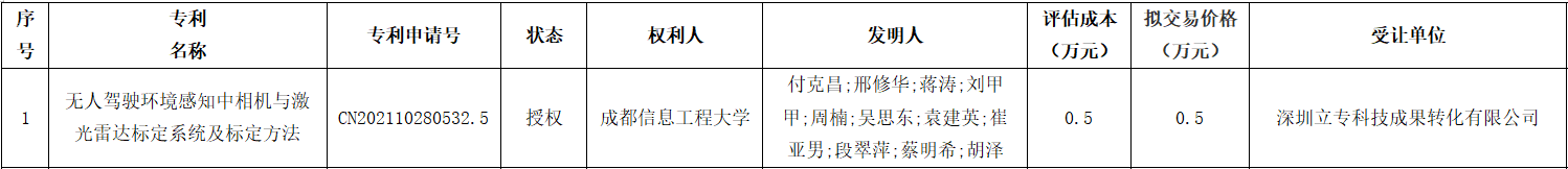 学校拟转让“无人驾驶环境感知中相机与激光雷达标定系统及标定方法”专利权,现将有关事项公示如下: