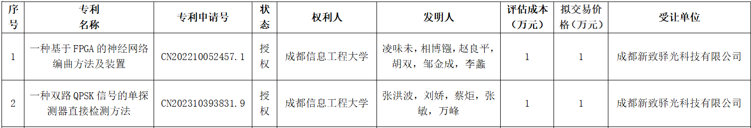 学校拟转让“一种基于FPGA的神经网络编曲方法及装置”等两项专利权,现将有关事项公示如下: