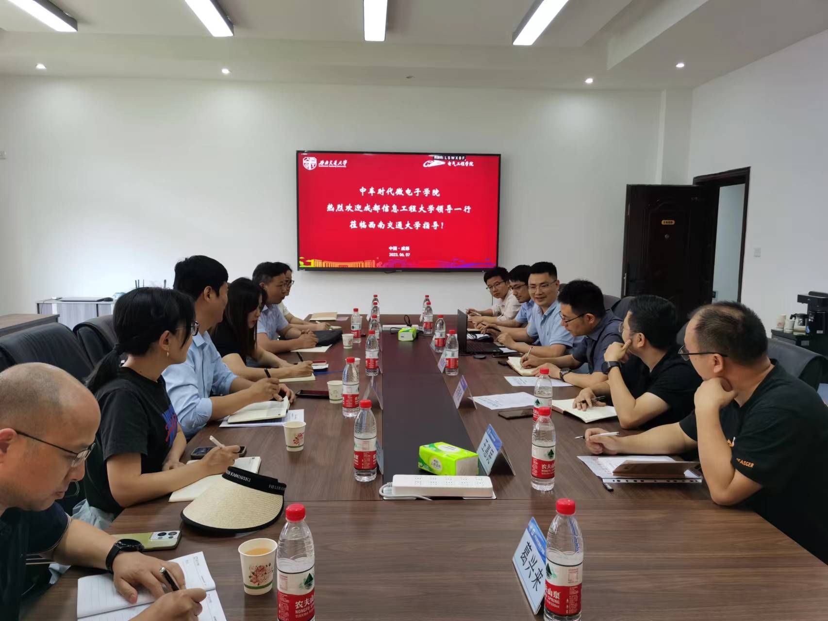 双方参会人员围绕现代化产业学院建设等方面展开了充分交流。西南交通大学-中车时代微电子学院、我校科技处、区块链产业学院相关教师参加了座谈。