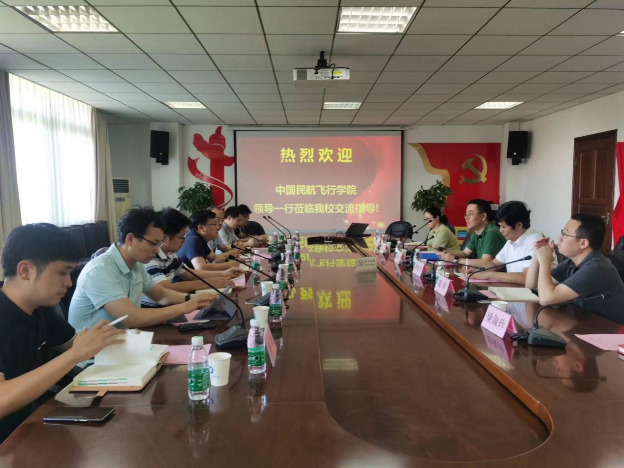 【本网讯】9月21日下午,中国民航飞行学院科研处程志刚处长一行来校交流座谈。学校科技处处长李乐中参加会议,会议由科技处副处长柳锦宝主持。