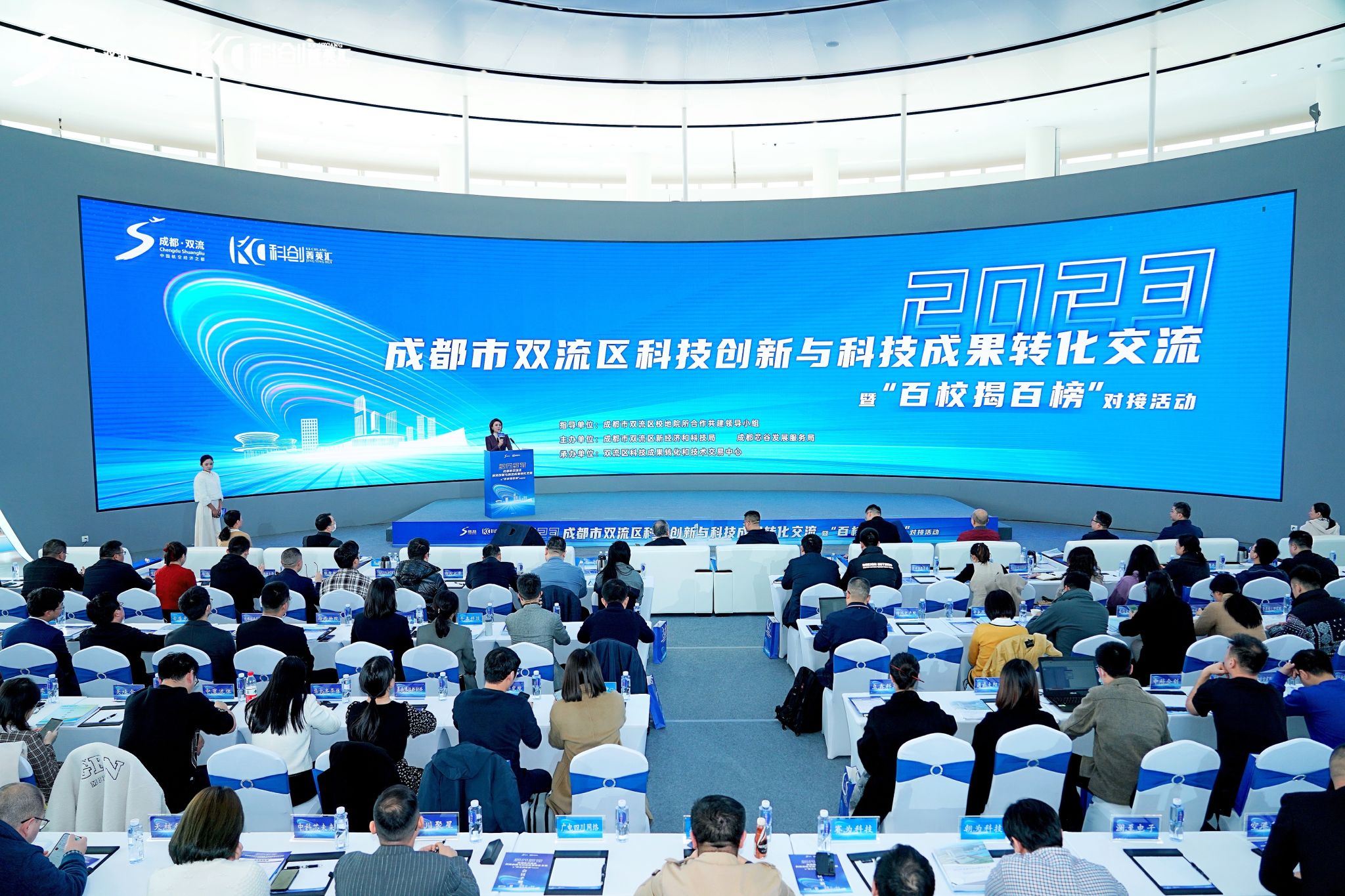 【本网讯】11月22日,科技创新与科技成果转化交流暨“百校揭百榜”对接活动在成都市双流区空港·云展示中心举办。双流区以科技成果转化和技术交易中心为核心平台,坚持以产业需求为导向,对接20多所高校院所的97个专家团队,通过“校企双进·找矿挖宝”等主题活动,建立常态化的“揭榜挂帅”机制。