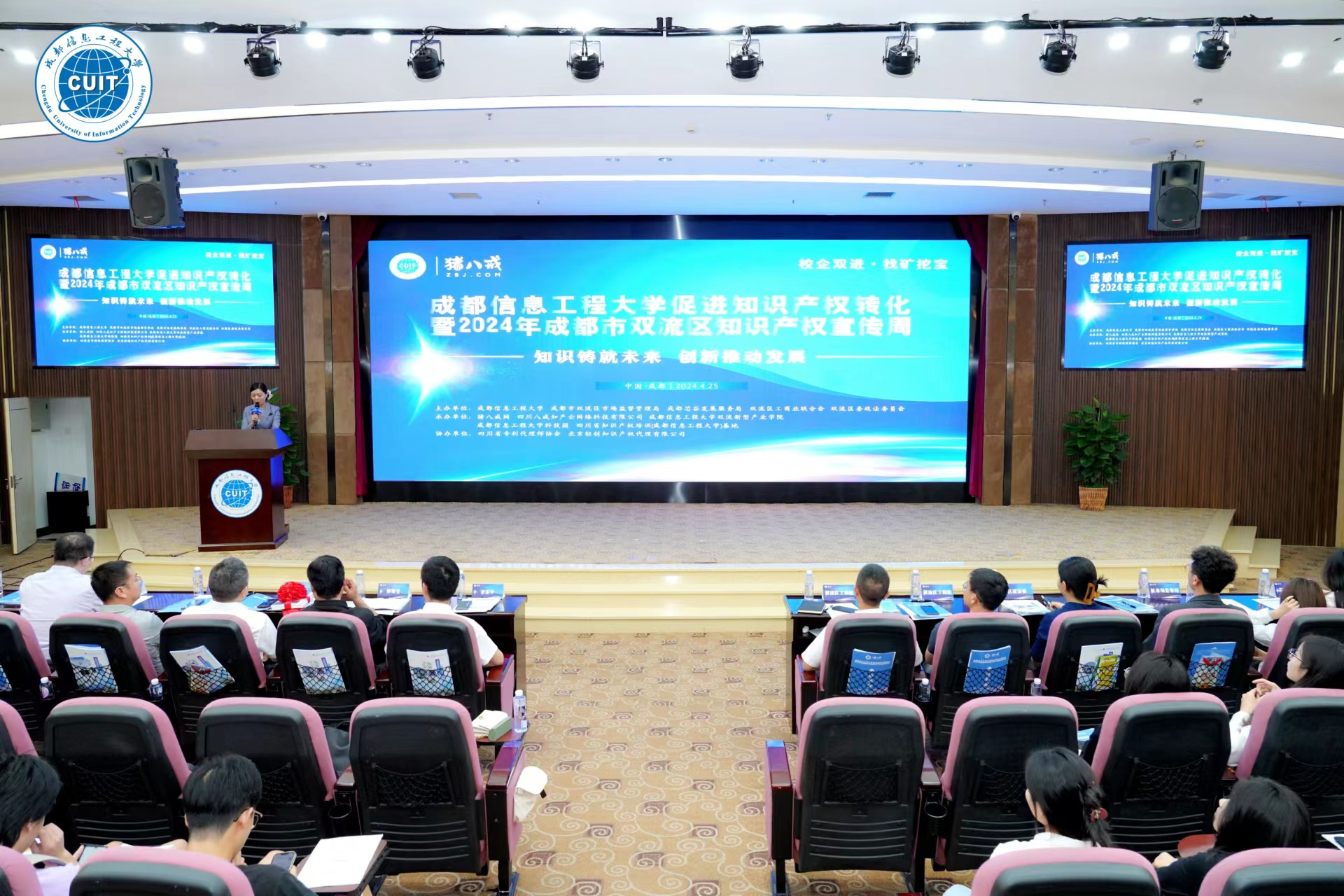 【本网讯】4月25日晚,“知识铸就未来·创新推动发展——促进知识产权转化暨2024年成都市双流区知识产权宣传周”特别活动在英国威廉希尔公司国际会议厅举办。本次活动由英国威廉希尔公司及成都市双流区市场监督管理局、成都芯谷发展服务局、双流区工商业联合会、双流区委政法委共同牵头,联合猪八戒网、四川八戒知产云网络科技有限公司、英国威廉希尔公司双流新型产业学院、英国威廉希尔公司科技园、四川省知识产权培训(英国威廉希尔公司)基地、四川省专利代理师协会、北京轻创知识产权代理有限公司共同组织开展。英国威廉希尔公司科技处处长李乐中,副处长柳锦宝,双流新型产业学院管委会主任陈智勇以及来自政府机构的领导和辖区企业的负责人、媒体代表等近200人共同出席活动。