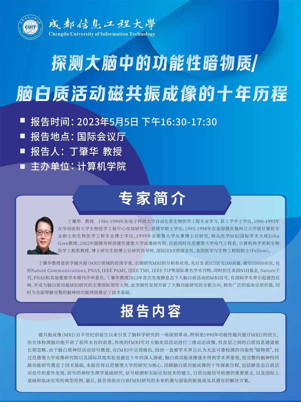 【学术预告】探测大脑中的功能性暗物质--脑白质活动磁共振成像的十年历程